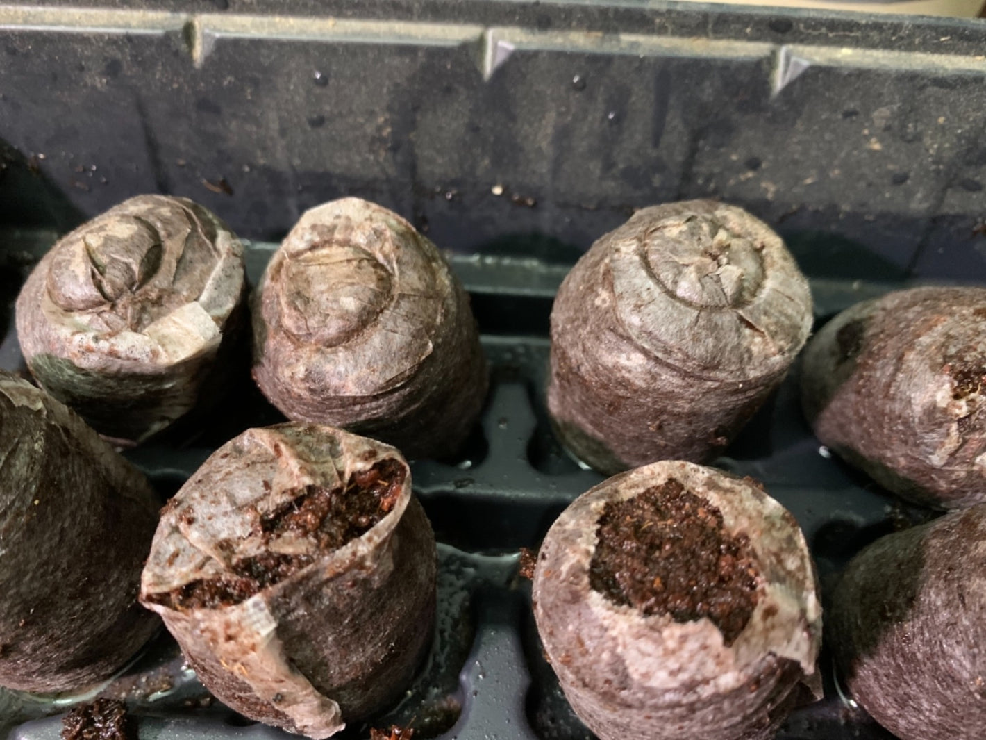 I started a few pellets in a bowl of warm water and they immediately started to expand. I squished them around a bit to break up the peat in the bag and put back in the water to finish absorbing as I worked on placing seeds in already prepared pellets. This system worked well and ensured each pellet was well saturated. The baggies are closed but there is a perforated area to easily pull open or snip with scissors in order to access the starter peat to plant the seeds.