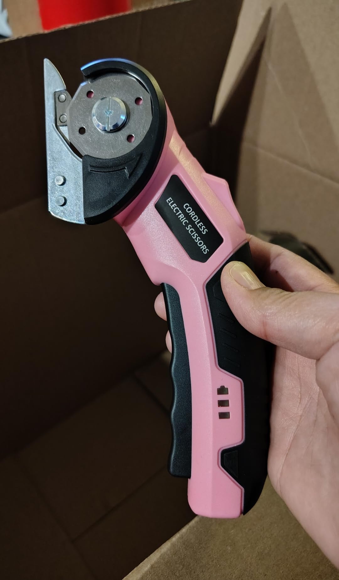 These 4V scissors are designed for versatility. They easily cut through double-wall cardboard, carpet, leather, felt, thick fabric, plastic packaging, and even thin tin/aluminum sheets. It's the perfect replacement for manual box cutters and rotary shears.