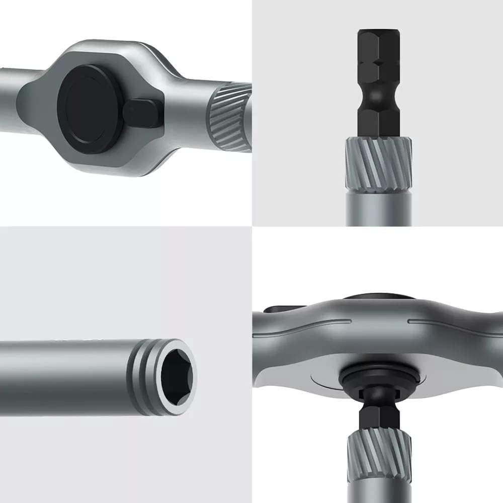 This tool effectively handles a variety of tasks, including home appliance repairs, furniture assembly, and repairs on computers, motorcycles, bicycles, and cars. It features a multi-position handle that can be easily adjusted for different tasks, even in tight or narrow spaces.