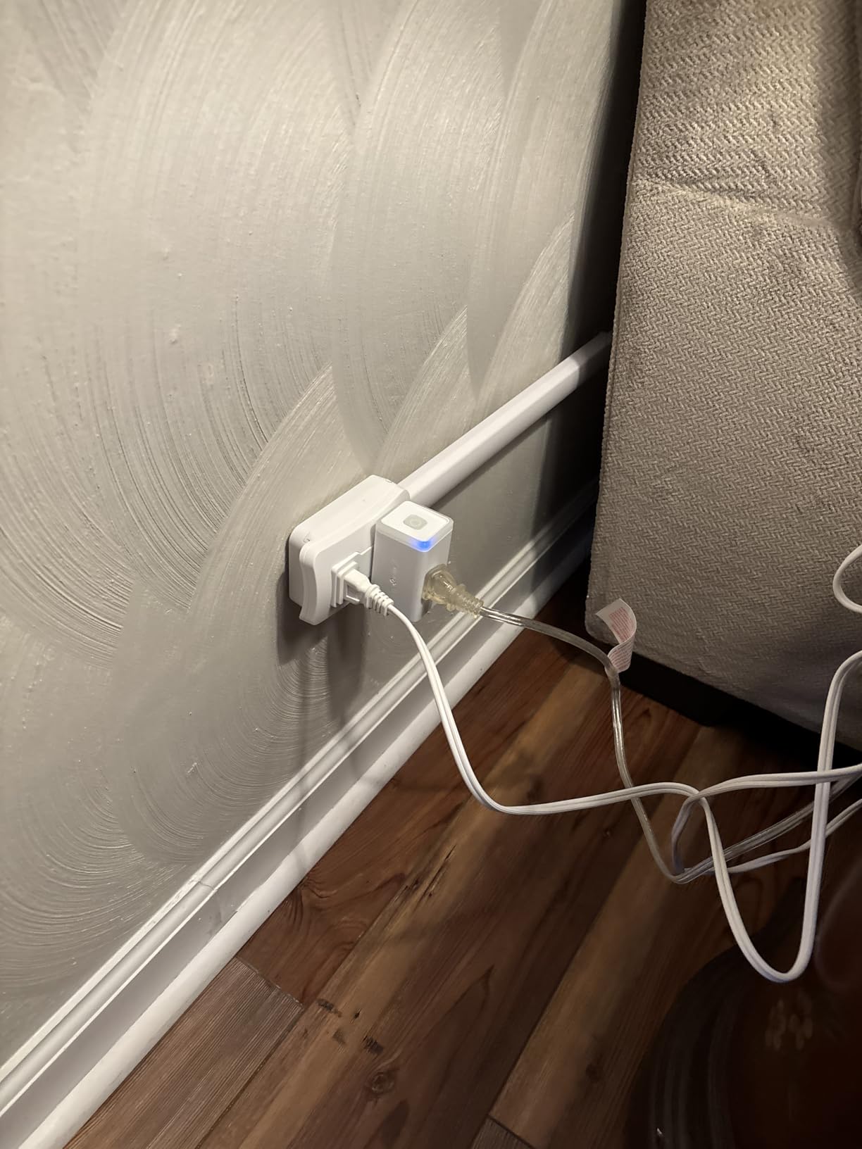 I wish I thought of this. I no longer have to move my oversized, bulky furniture in order to plug things in. I live in an old house with all the receptacles placed in the center of the wall. No possible way to reach without using an unsightly extension cord or moving the furniture, then I found this. It is well designed and of good quality. I love that it presses so flush to the wall that the sofa doesn't touch it. The versatility of the extension allows me to use it on either side of the sofa, or even above the sofa if I choose. It's a bit pricey but I believe it to be a great value overall as I will save money on Chiropractor visits from moving my furniture.10 people fou