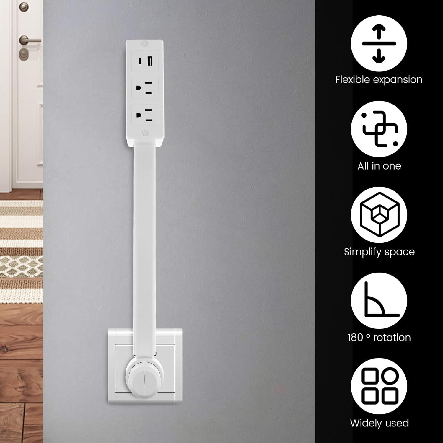 Retractable Structure for Adjustable Use: This adjustable outlet extender extends and retracts to suit different heights and angles. Adapt it to furniture height or user preference without effort.
