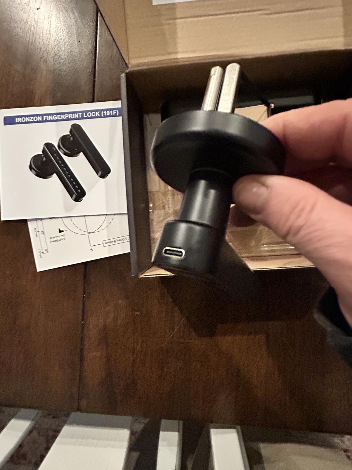 "This thing was honestly a pain to install. An it will stay locked so if u install it an lock your self out u will be stuck until it is put all the way together an finger print locked in. It shouldn't beable to do that until installed. Setting up finger prints an codes are not simple. Unlocking with finger print doesn't always work. It's a great product I use it as a way for my children to get in after school as where I stay it is key fobs an not real keys to lock the doors. Buy this with caution but in the end great product."