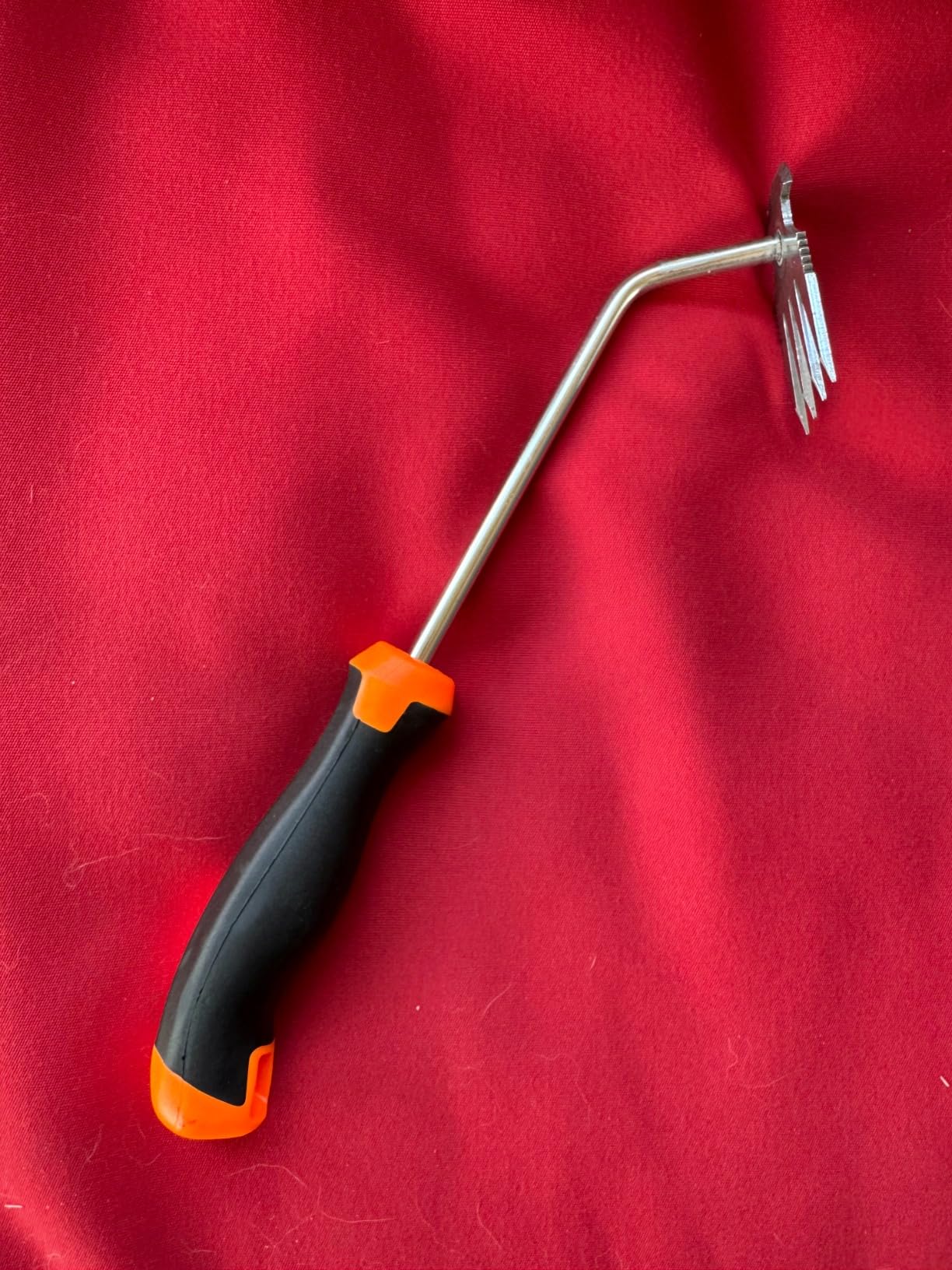 This little puppy pulls out the weeds and the roots without a lot of hand strength needed. It pulls up hard to grasp weeds, grasses, anything you want out of your lawn or garden. You can wipe out a whole row of weeds in seconds. It is quite sharp, the right length to reach out and grab a weed . I am careful with it because it is sharp, but it comes with a safety cover, which is nice when putting it away; so I don’t inadvertently grab the sharp end by mistake. This is my new favorite tool, replacing the serrated knife which is also good for weeds, but requires much more physical strength from the hands.